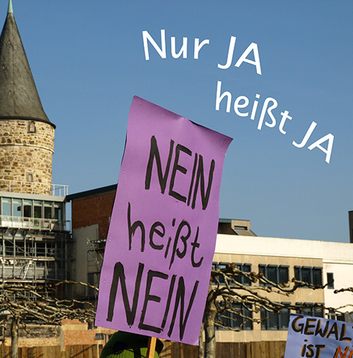 Der von allen Frauenorganisationen gefeierte Durchbrauch lautet jedoch „Nein heißt Nein!“ Ebenfalls lange Jahre erkämpft, wird nun endlich auch ein deutliches Nein! oder ablehnendes oder abwehrendes Verhalten von Frauen wie Weinen oder Wegdrehen anerkannt.